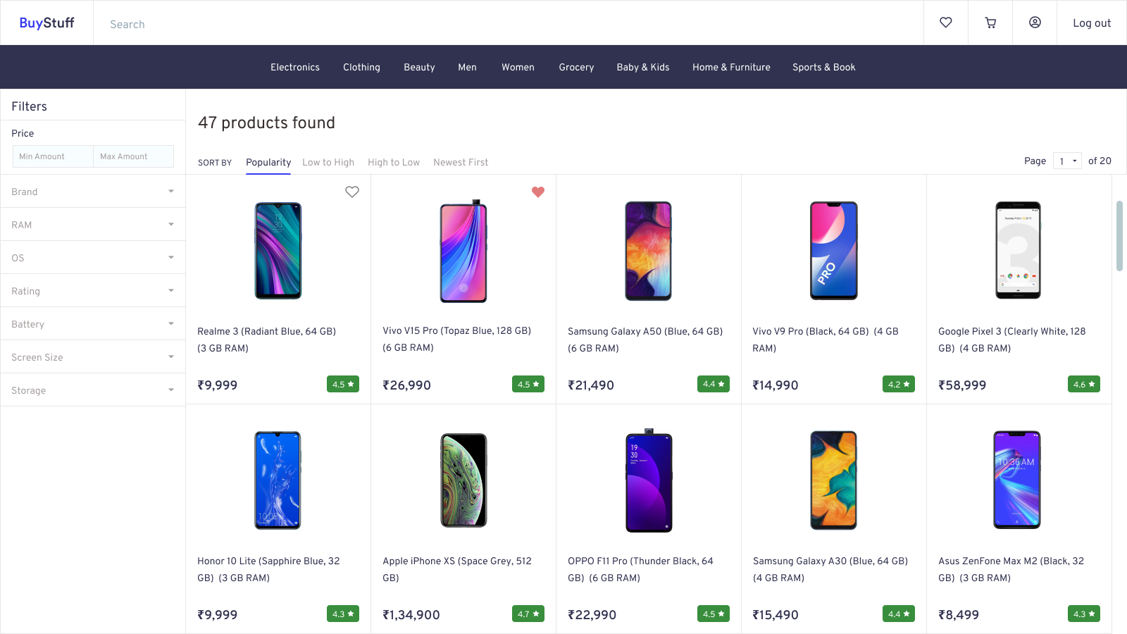 Fairly simple interface for an ecommerce platform.